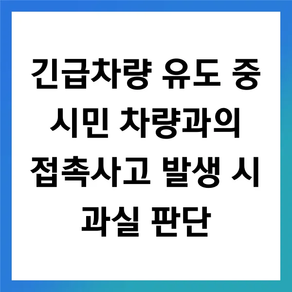 긴급차량 유도 중 발생할 수 있는 시민 차량과의 접촉사고에 대한 과실 판단은 매우 복잡하고 , 여러 가지 요소에 따라 달라질 수 있습니다. 먼저, 과실 판단의 핵심은 '주행의 안전성' 과 '상대방의 주의 의무' 입니다. 관련 법률에서는 사고를 유발한 경우, 각 당사자의 책임 정도를 비율로 나누어 판단하는데, 일반적으로 이 비율은 100% 로 산정된 과실을 양측의 잘못에 따라 나누는 방식으로 진행됩니다.