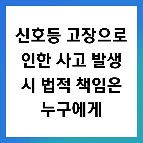 신호등 고장으로 인한 사고의 법적 책임 은 복잡한 문제입니다. 법적 책임은 상황에 따라 운전자, 정부, 지자체, 보험사 등 여러 주체가 나누어 질 수 있습니다. 도로교통법과 관련 법령은 이러한 사고를 규제하고 있으며, 각 주체의 책임과 의무 를 명확히 규정하고 있습니다. 또한, 정부와 지자체 는 신호등의 유지 및 수리 에 대한 책임을 가지고 있으므로, 이들의 역할도 중요합니다. 운전자는 주의 의무를 다해야 하며 , 보험사 역시 사고 발생 시 그 책임을 분담합니다. 결국, 사건마다 구체적인 사정을 고려하여 책임이 결정될 필요가 있습니다. 신호등 고장이 야기하는 복잡한 법적 책임 은 모든 주체가 자신의 역할을 충실히 이행할 때 최소화될 수 있습니다.