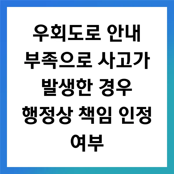 우회도로 안내 부족으로 인한 사고 는 단순한 불상사가 아닙니다. 이러한 사고가 발생했을 때, 행정상 책임이 과연 어디에 있는지에 대한 논의 는 매우 중요한 문제로 떠오릅니다. 교통 흐름의 안전성을 확보하기 위해서는 우회도로에 대한 명확하고 효과적인 안내가 필수적입니다. 사고 발생 시 책임 소재 분석을 통해 우리는 제도 개선의 필요성을 더욱 절실히 느끼게 됩니다. 이러한 이슈는 단순한 개인의 문제를 넘어서 사회 전체의 안전과 직결 되므로, 신중한 접근이 요구됩니다. 행정의 역할과 책임, 그리고 예방을 위한 제도적 노력이 결합되어야 할 시점입니다.