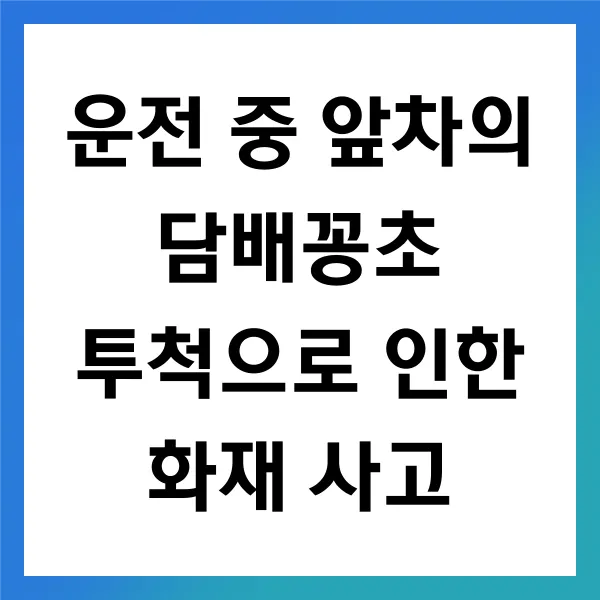 마지막으로, 이러한 법적 책임과 처벌 기준은 운전자가 도로에서 최소한의 안전을 준수해야 함을 상기시킵니다. 담배를 피우는 운전자는 특히 주의해야 하는데, 담배꽁초는 간단한 쓰레기처럼 보일 수 있으나, 화재를 유발할 수 있는 치명적인 원인 이 될 수 있습니다. 법적 책임과 처벌 기준을 정확히 이해하고 준수하며, 교통사고 예방을 위해 모든 운전자가 주의 깊게 행동해야 합니다. 이를 통해 안전한 도로 환경을 조성할 수 있다는 점을 인식해야 합니다.