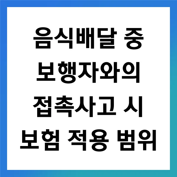 음식 배달 중 보행자와의 접촉사고가 발생했을 경우 , 적절한 보험 적용 방법을 아는 것은 매우 중요합니다 . 이러한 사고는 예기치 않게 발생할 수 있으며, 그로 인해 발생하는 손해에 대한 보호가 필요합니다. 따라서, 사고 발생 시 어떤 방식으로 보험을 이용하여 손해를 보상받을 수 있는지에 대해 구체적으로 알아보겠습니다.