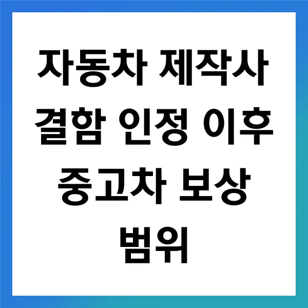 자동차 제작사에서 결함을 인정한 이후 , 중고차 보상 범위에 대한 소비자들의 관심 이 높아지고 있습니다. 이러한 결함 인정 절차와 기준 을 제대로 이해하는 것은 소비자의 권리를 보호하는 데 필수적입니다. 또한, 결함 차량을 판매할 때의 처리 방법 을 알아두는 것이 중요합니다. 오늘은 이러한 주제를 통해 중고차 보상 제도에 대한 명확한 정보 를 제공하고자 합니다. 소비자 여러분이 올바른 결정을 내릴 수 있도록 돕고자 합니다. 저희의 전문적인 안내를 통해 더 나은 소비 환경이 조성되길 기대합니다.