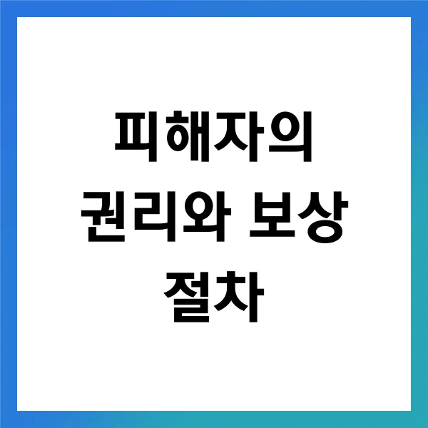 이와 같이 피해자는 자신이 입은 피해를 명확히 인지하고, 법적 권리를 행사하며 보상을 받을 수 있는 여러 절차를 통해 자신의 권리를 지킬 수 있습니다. 특히, 법률 상담을 통해 보다 전문적인 조언을 받을 수 있는 경로도 있으므로, 필요시 전문 변호사와 상담을 고려하는 것이 좋습니다. 이로 인해 피해자는 자신의 권리를 보다 확실하게 보호할 수 있는 기회를 가질 수 있습니다.