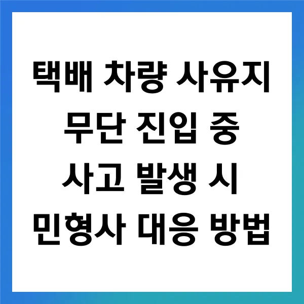 택배 차량의 사유지 무단 진입 은 법적 분쟁의 원인 이 될 수 있습니다. 이러한 상황에서 민사적 및 형사적 대응 방법 을 정확히 이해하는 것이 중요합니다. 특히, 사고 발생 시 책임이 누구에게 있는지 를 명확히 알고 있어야 하며, 예방을 위한 사유지 관리 방안 도 필요합니다. 이를 통해 불필요한 갈등을 줄이고 , 안전한 환경을 조성 할 수 있습니다. 따라서, 사유지 소유자는 법적 절차와 관리 방법을 숙지 하여 사고를 미연에 방지해야 합니다. 안전하고 철저한 대비가 필수적인 시대 입니다.