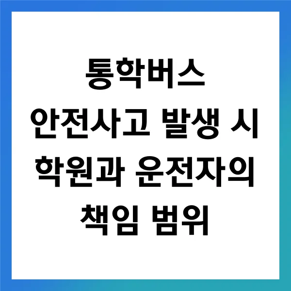 통학버스 안전사고는 그 책임 소재가 명확히 규정되어야 합니다. 학원은 통학버스의 안전 운행을 위한 관리 의무 를 다해야 하며, 운전자는 규정에 따른 주의 의무를 준수 해야 합니다. 이 두 주체의 의무가 충실히 이행될 때 사고 예방이 가능하며, 불미스러운 사고가 발생할 경우에도 원활한 문제 해결 이 이루어질 수 있습니다. 따라서 학원과 운전자는 지속적인 교육과 점검 을 통해 안전한 통학 환경을 조성해 나가야 할 것입니다. 책임의 명확한 인식은 학생들의 안전을 보장하는 가장 기본적인 출발점 입니다.